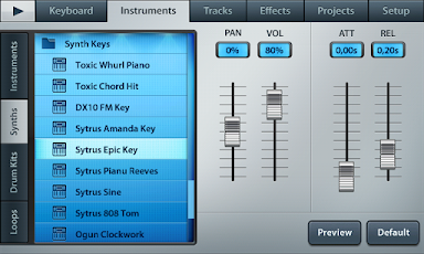 • Pan, el volumen, la liberación y el ataque configurable tiempo por instrumento